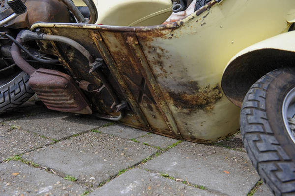 The scooter remains largely in original condition, although some parts have been repainted in the past, as visible in the photos.